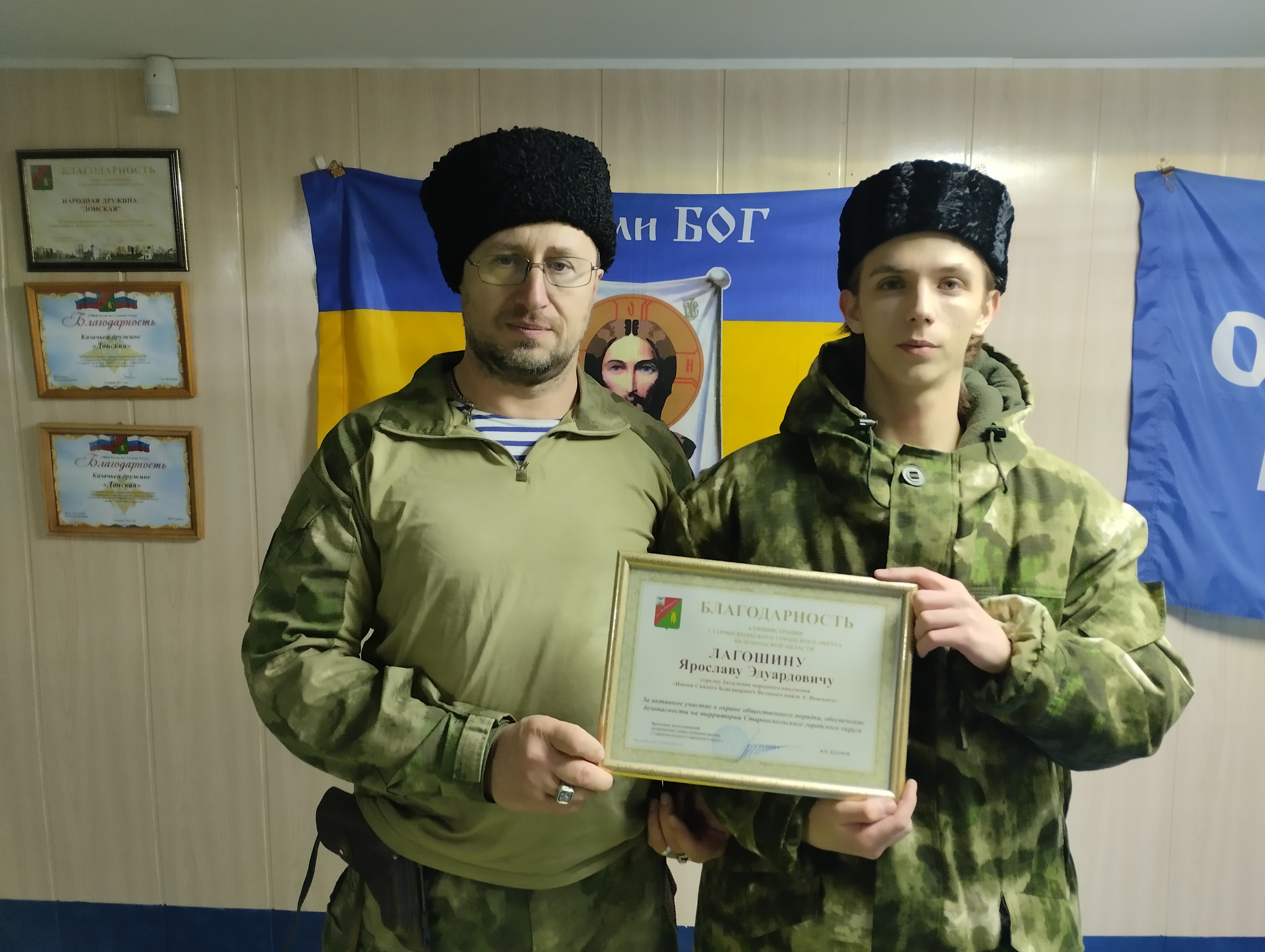 Наступил новый 2025 год. Его начало было приятным для казаков Старооскольского Станичного казачьего общества «Станица Донская». За активное участие в охране общественного порядка и обеспечение безопасности на территории Старооскольского городского округа пять представителей общины награждены Благодарностью Главы В.Н. Ждановым.