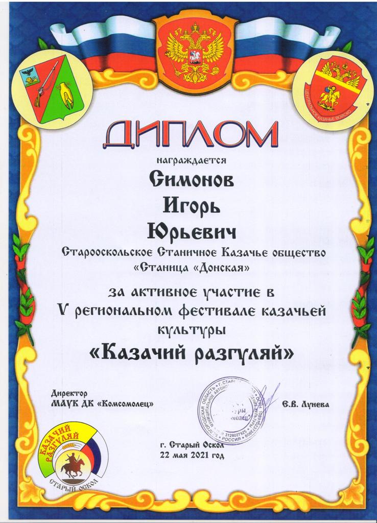 22 мая в Старом Осколе состоялся V региональный фестиваль казачьей культуры «Казачий разгуляй».