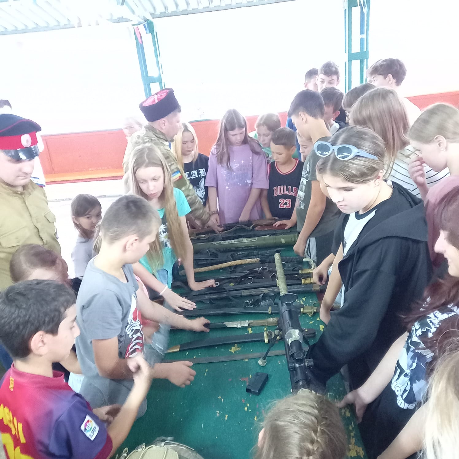 В эти выходные представителей Старооскольского Станичного Казачьего общества «Станица «Донская» и воспитанников ВПК «Георгиевский» очередной раз пригласили на встречу в детский лагерь «Космос». На предложение ос удовольствием откликнулись Атаман ССКО «Станица «Донская» - руководитель клуба ВПК «Георгиевский» Назаренко В.В., и инструктора клуба - начальник штаба общины Кадочников В.А., первый заместитель Атамана Фефелов В.В. и казак общины Попов Дмитрий. Так же с огромным энтузиазмом готовились к встрече воспитанники Вика и Катя, хотя для Вики это не первое общение с отдыхающими ребятами из лагеря, но все равно волнительно. Приём был радушный. Ребят интересовала история казачества как в целом, так и Белгородского в частности. Ребята с интересом слушали о быте и жизни казаков, о их военных подвигах от древних времен до наших дней. Лекция плавно перешла к показательным выступлениям, что подготовили наши воспитанницы, Катя показала элементы фланкировки в месте с Владом Кадочниковым, затем девочки продемонстрировали технику Карате показав несколько кат, в том числе Вика показала технику с оружием. Показательные выступления перешли к наглядным пособиям, что были принесены в лагерь. Ребята с удовольствием интересовались принесённым оружием. Встреча прошла в тёплой обстановке.