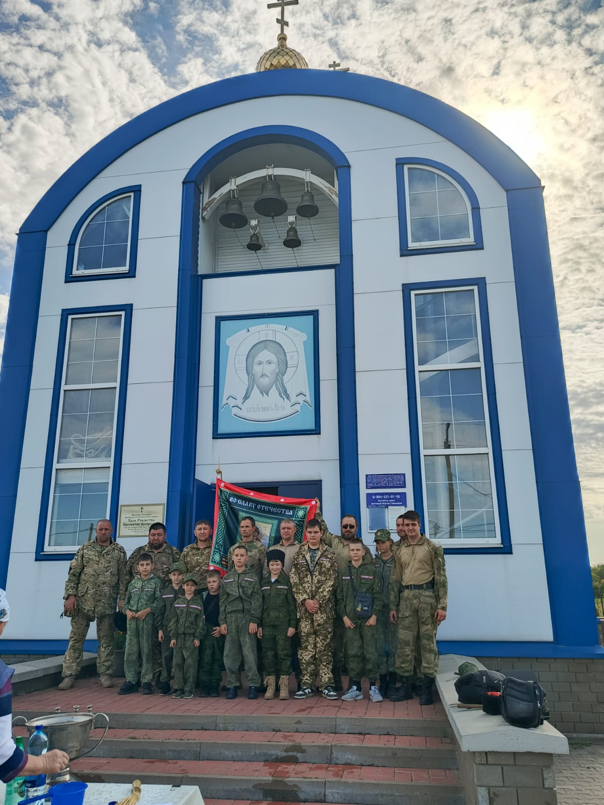 31 августа в ВПК «Георгиевский» прошло торжественное событие. Благодаря помощи казаков Старооскольского Станичного Казачьего Общества «Станица «Донская» казачата получили флаг и знамя. И в этот день совместно с казаками собрались в храме с. Песчанка где причастились, а затем Отец Максим сперва провел молебен в честь начала нового учебного года затем освятил знамя клуба.