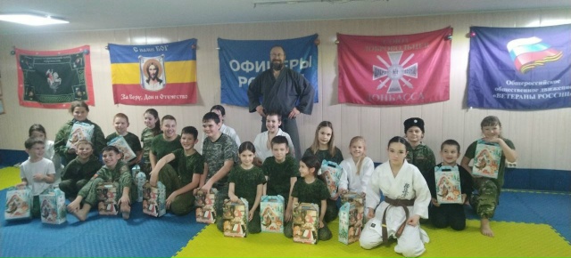 В связи с новогодними праздниками и Рождеством Христовым от имени казаков БОКО ВКО ЦКВ Атаман казачий полковник Хлудеев Ю.В. и начальник штаба Руднев В. поздравили кадетов военно-патриотического казачьего клуба «Георгиевский» (руководитель - Атаман ССКО «Станица «Донская» казачий полковник Назаренко В.В.) и передали им прекрасные подарки. Назаренко В.В. передал ребятам теплые поздравительные слова Атамана БОКО: пожелания крепкого здоровья, успехов в учебе и патриотической деятельности, исполнения заветных желаний, сохранения казачьих традиций, уважения к истории и служения Отечеству. После чего вручил подарки.
