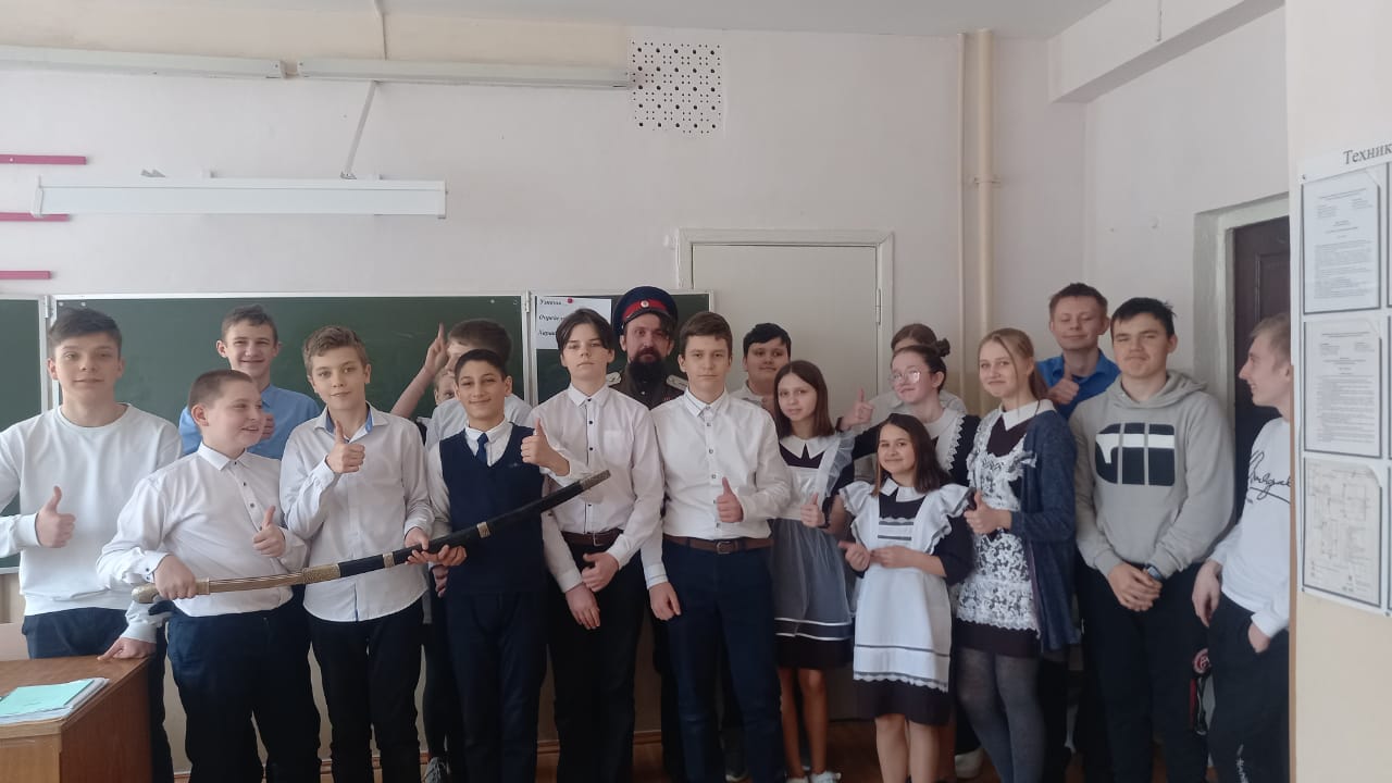 8 апреля 2022 в школе №17 прошел уроки мужества. Ребята встретились с заместителем Атамана Старооскольского Станичного Казачьего общества «Донская», сотником Коренским Алексеем Николаевичем. Который рассказал, кто такие были казаки в прошлом и как изменился облик казаков в настоящее время, поразмышляли какими качествами обладают настоящие казаки и ответил на вопрос почему нужно защищать Родину.