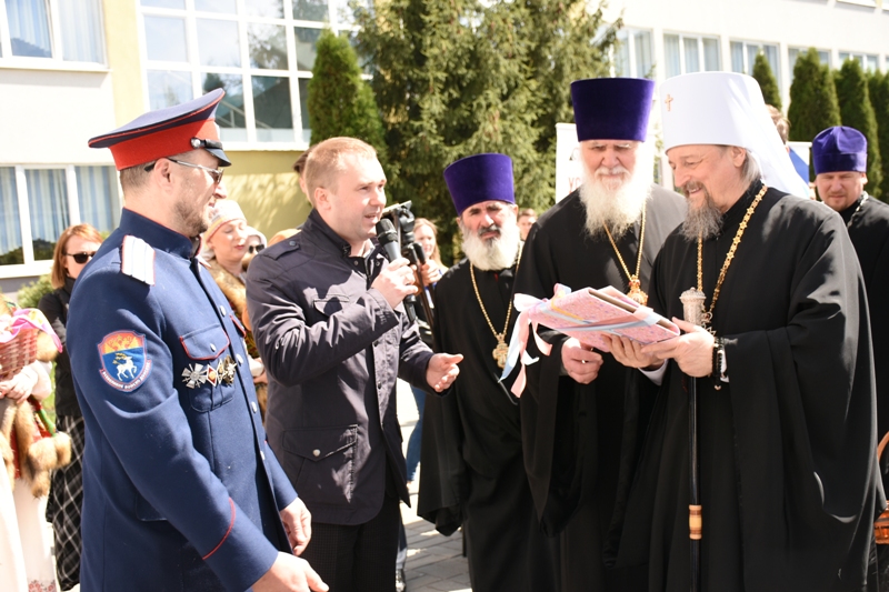 Среди площадок была и площадка СОФ МГРИ на которой были представлены работы студентов на православную праздничную тематику. Изготовленные студентами иконы, пасхальные яйца и праздничные поделки. Митрополита Белгородского и Старооскольского Иоанна встретил студенческий коллектив «Слободушка», который под руководством художественного руководителя Адейкиной Ларисы Георгиевны исполнил праздничные пасхальные песни. После которой с праздничной поздравительной речью выступил директор филиала Двоеглазов Семен Иванович, который после поздравления вкратце рассказал об учебном заведении и присутствующих на площадке, где кроме студентов заведения в качестве поздравляющих присутствовал руководитель ВПК «Георгиевкский» (Атаман станицы «Донская») Назаренко В. В.