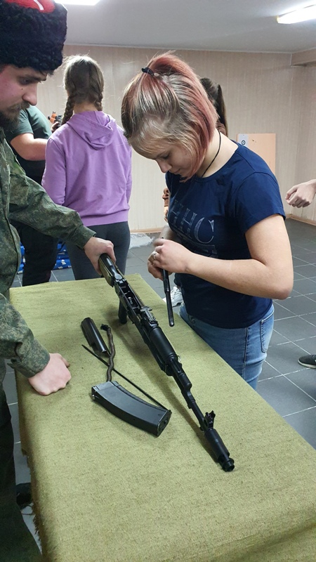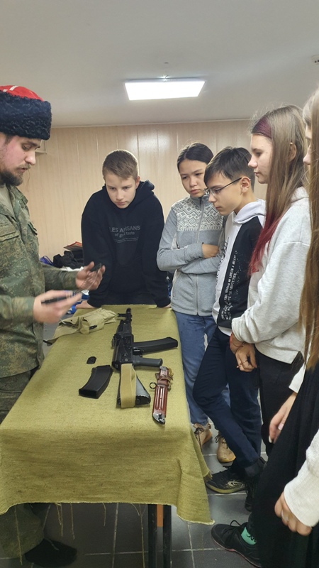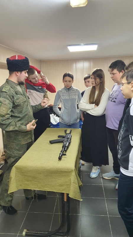 Почти неделю по вечерам на базе ВПК «Георгиевский», созданного при Старооскольском Станичном казачьем обществе «Станица «Донская» Руководитель организации казачий полковник Владимир Назаренко и заместитель руководителя Владислав Кадочников, проходили занятия для ребят и девчат из объединений "Школа туризма" и "Школа безопасности". Ребят ознакомили с видами противопехотных мин и объяснили как действовать при обнаружении противопехотной мины ПФМ-1 "Лепесток", которые ВСУ активно "разбрасывает" в жилых районах. Ознакомили с устройством гранат - Ф-1 и РГД-5. Так же в ходе занятий все потренировались в разборке и сборке макета массогабаритного автомата АК-74.