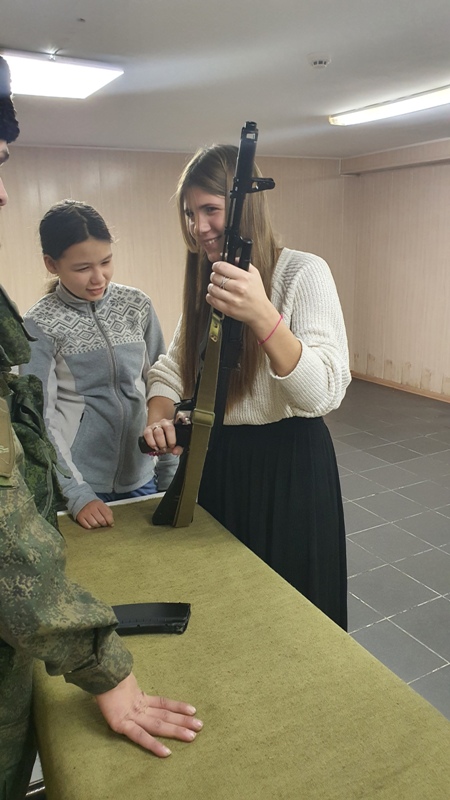 Ребята с удовольствием слушали материал и с азартом учились производить разборку – сборку массогабаритного макета автомата, пробовали на своих плечах тяжесть бронежилета…